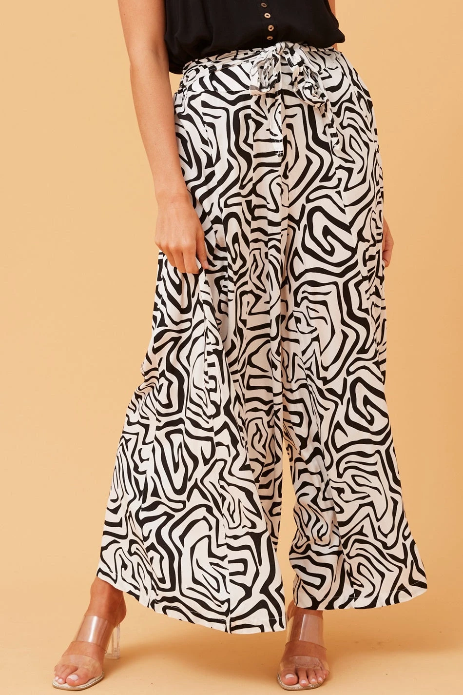 The dream wide-leg pants are back in a spring inspired print. These pants have a comfy elastic waistband and tie detail to tie up at the front or back. Pair with a tank top or a top with similar print for the ultimate boho co-ord.