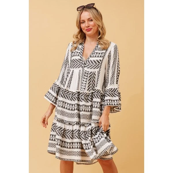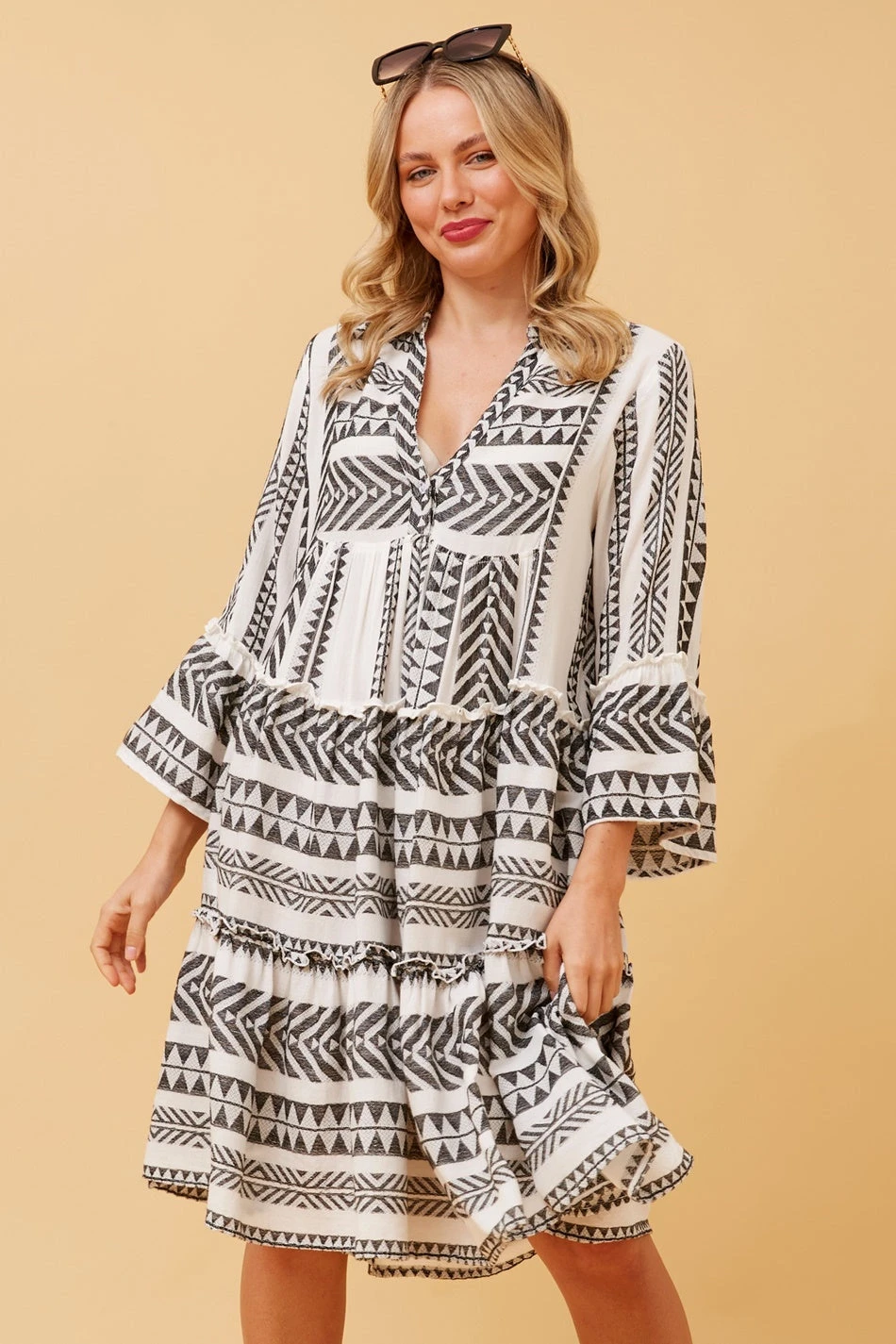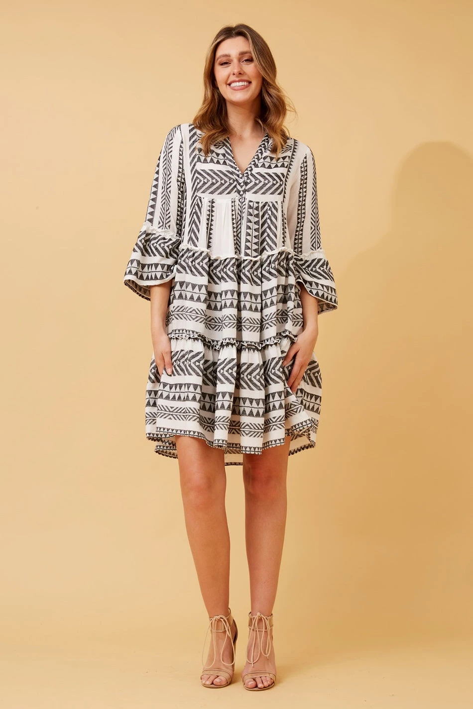 Make the jacquard print short dress your new go-to staple piece. Accessorise and pair back with open toe heels to dial up your look!