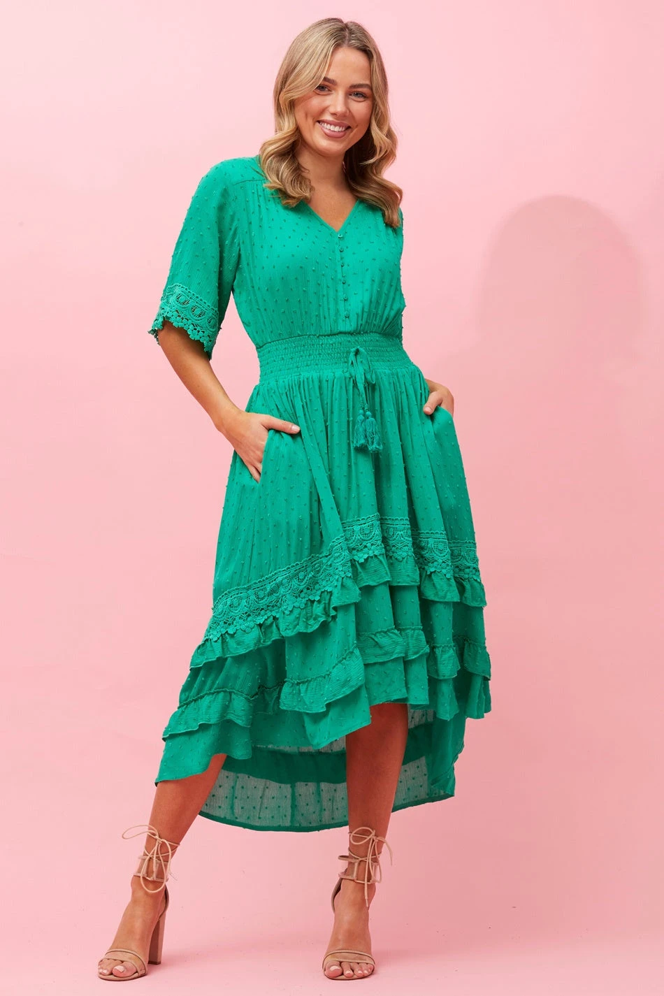 - Tiered frill hem