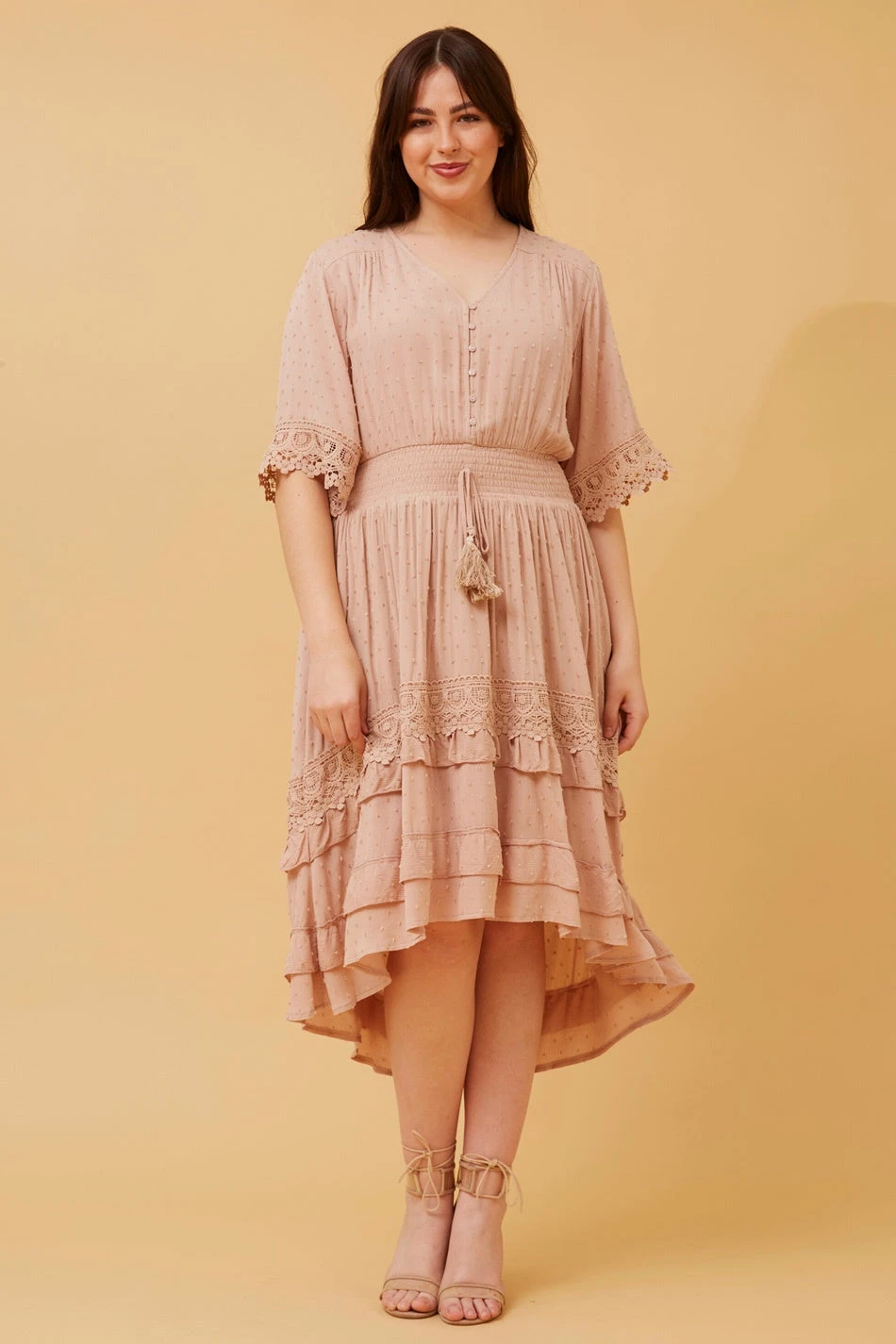 - Lace trim detail on hem
