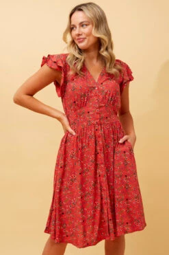 Add this new print to your summer wardrobe! With frill details and contrasting border print, this floral dress is perfect for your next garden party! Pair it with strappy sandals for an elevated look!