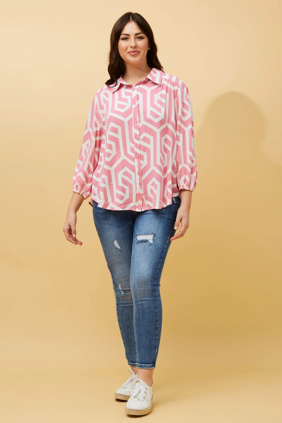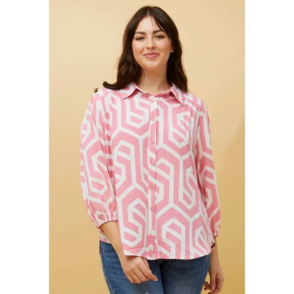 Feel stylish and comfortable in this abstract print shirt. Easy to style with everyday jeans , tuck in shorts or pair with comfy leggings. Style with heels for an effortless dressy look or sneakers for a casual look!