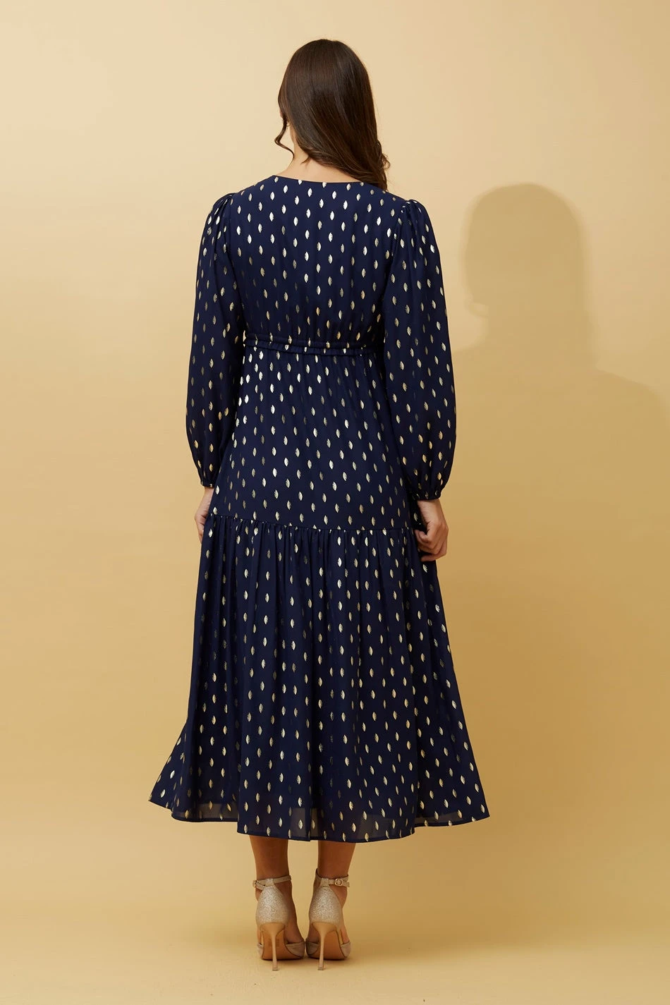 Shine like a star in our ditsy foil print maxi dress! Crafted in an all over foil print design, this flattering party dress is detailed with on-trend layers. Add a clutch bag and high heels to be ready to party in seconds!
