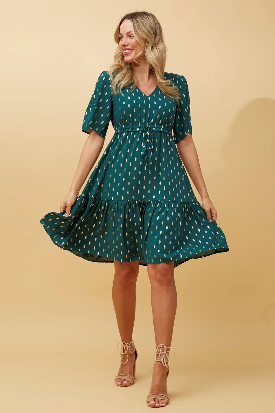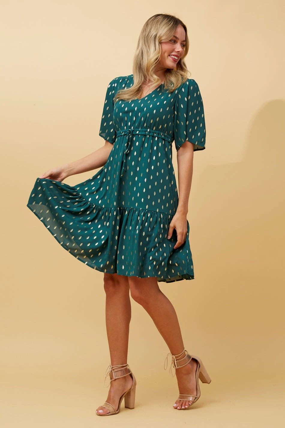 DIAMOND TEARDROP FOIL PRINT SHORT DRESS