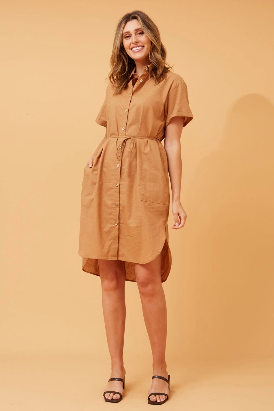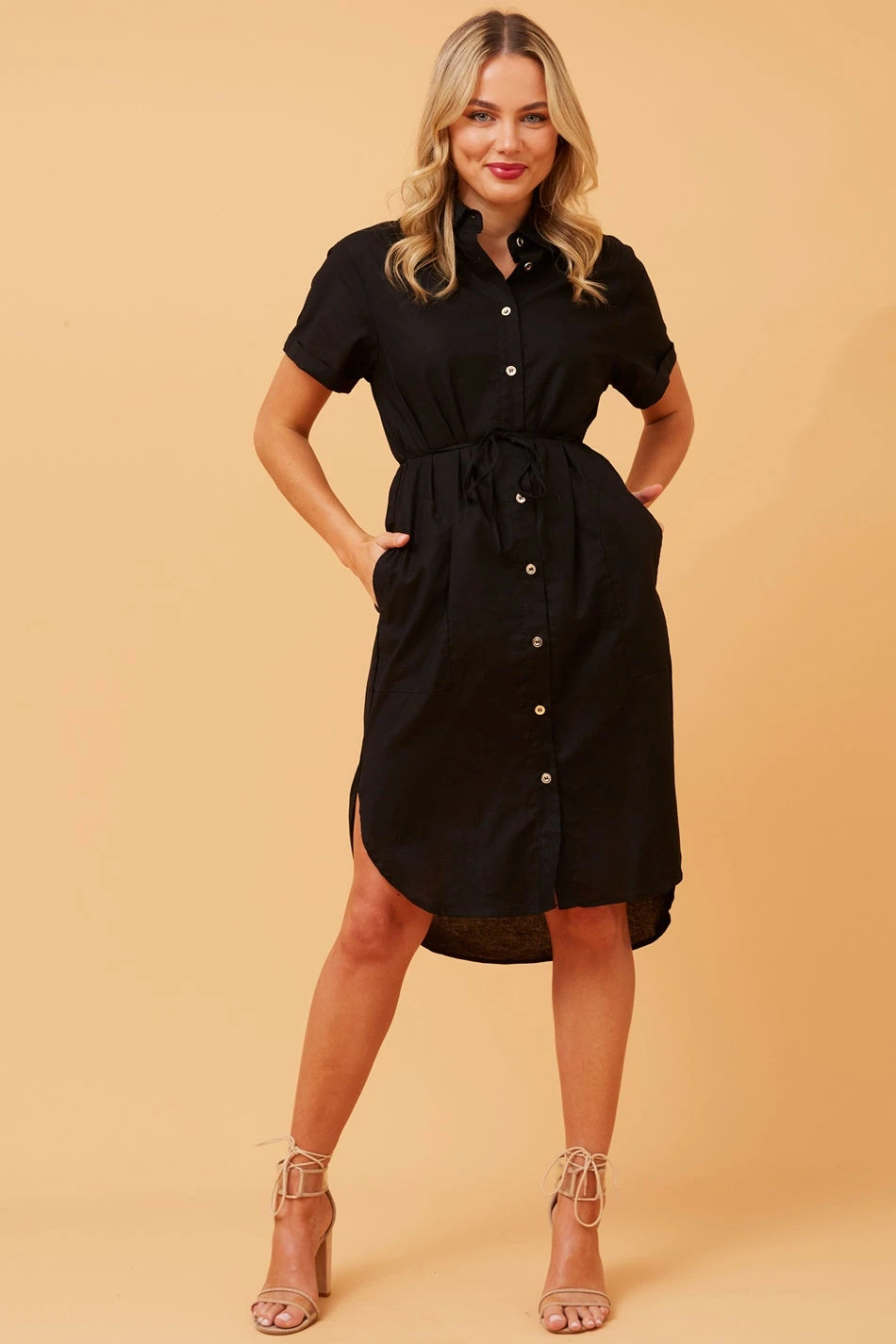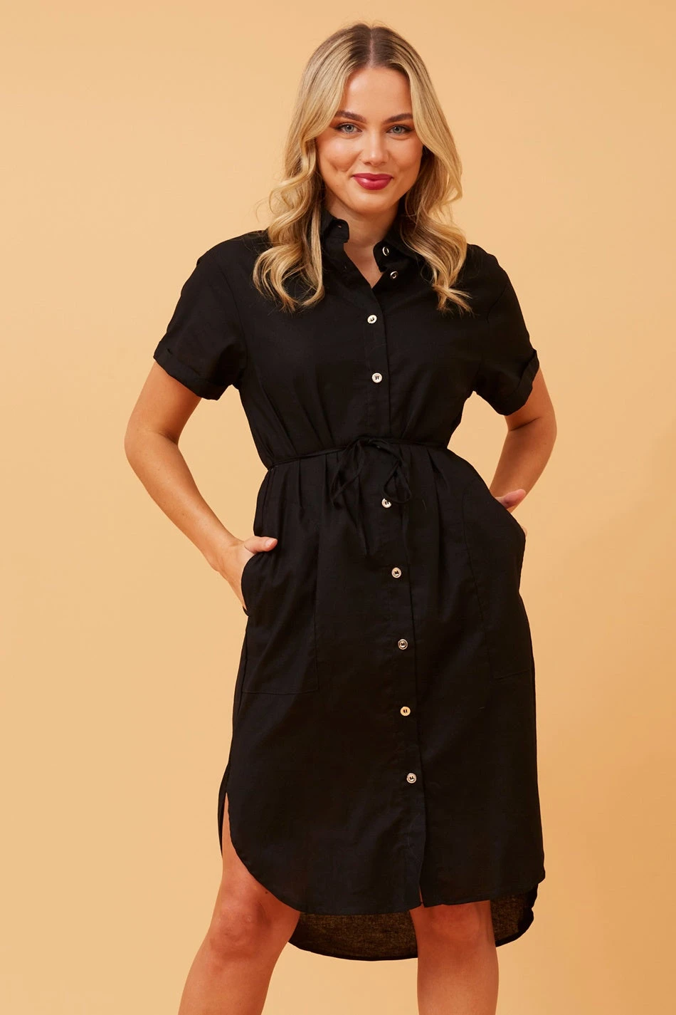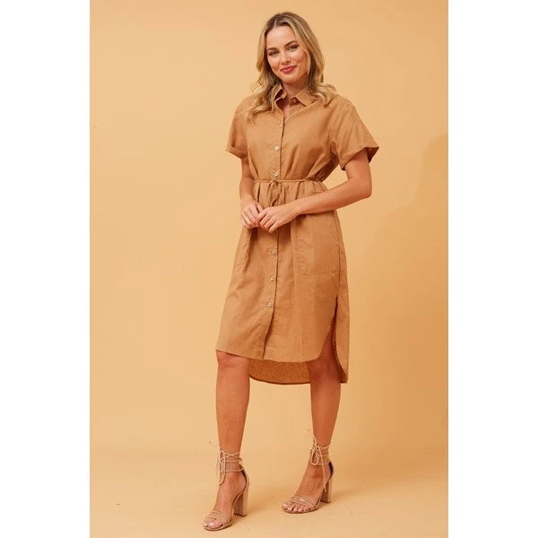 The shirt dress silhouette ensures a comfortable and tailored fit, making it an ideal choice for both casual and semi-formal settings. Whether paired with flats for a laid-back look or heels for a more polished ensemble, the Classic Chic dress effortlessly combines ease and elegance.