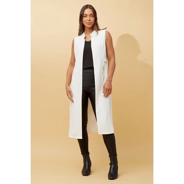 Elevate your ensemble with a touch of sophistication in this longline vest. The elongated silhouette exudes modern elegance, making it a versatile piece for both casual and dressy occasions. Pair it with tailored trousers and a crisp blouse for a polished office look, or throw it over a simple dress for a stylish evening ensemble.Â