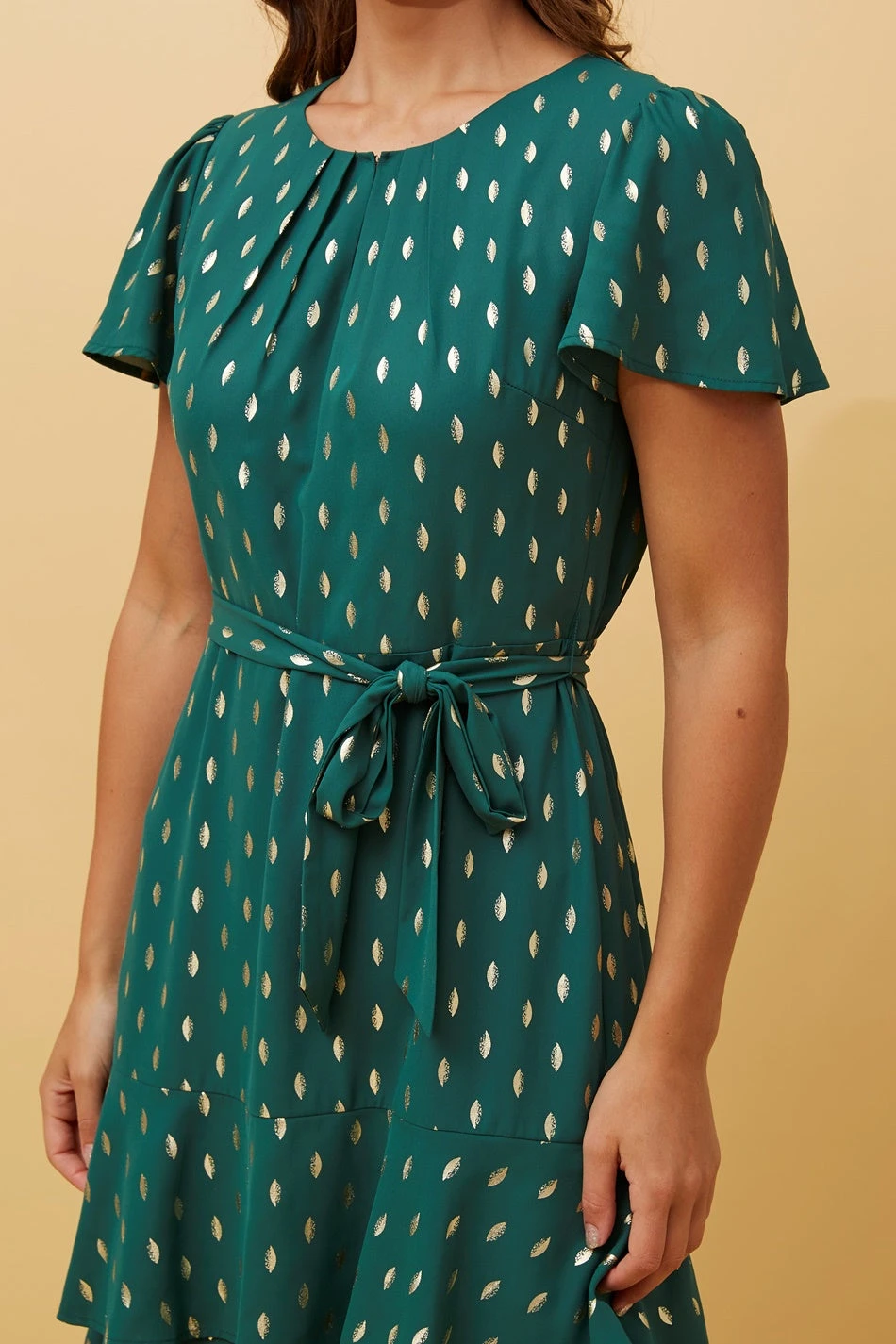 • Short flounce sleeves