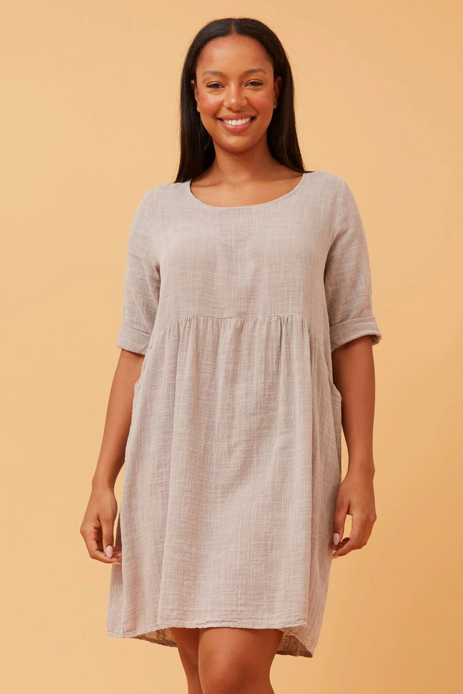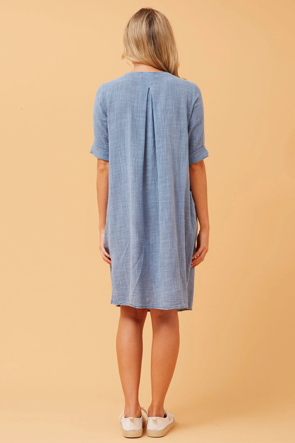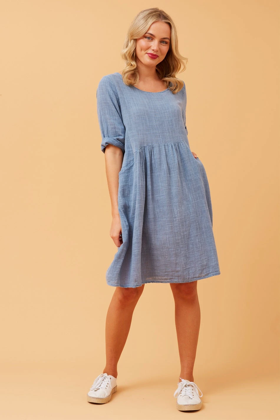 Our Made in Italy minimalistic dress comes with 3/4th sleeves, twin side pockets and an regular fit! With a light-weight airy fabric, this dress is a perfect summer staple! Match this with your favourite sandals to complete an effortless summer sophistication look!