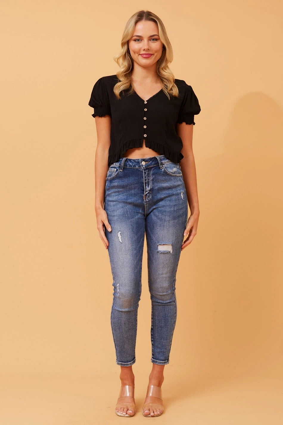 This crop top is designed with comfort and flair in mind, featuring short sleeves for a casual yet chic look. Whether paired with high-waisted jeans for a laid-back vibe or a skirt for a night out, the Breezy Blossom crop top is a versatile choice that effortlessly blends fashion and fun.