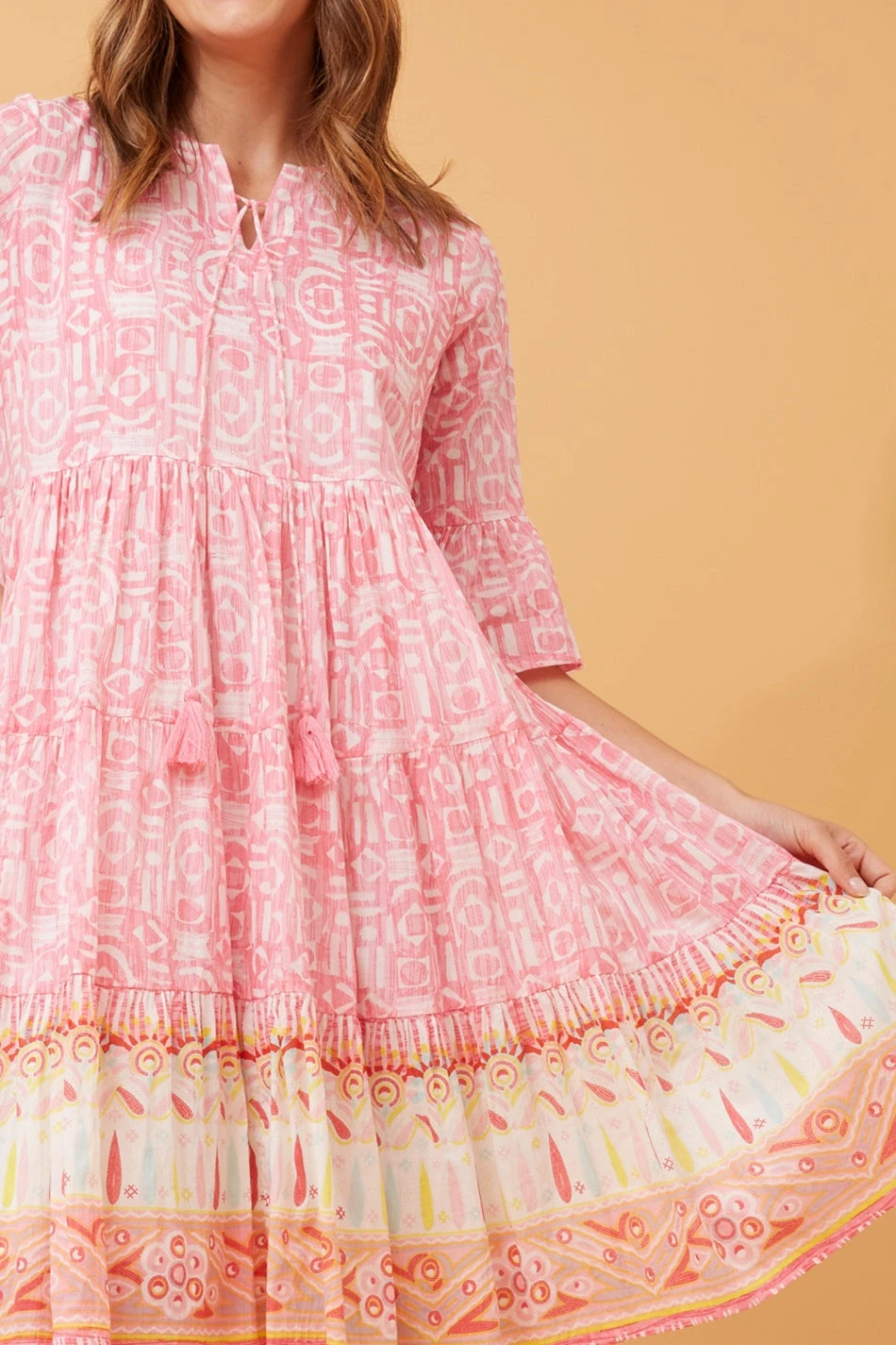 - Contrasting border print detail on hem