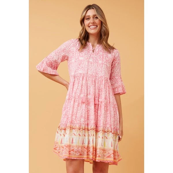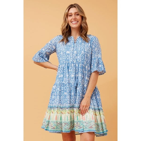 Make this boho print short dress your new go-to staple piece. Accessorise and pair back with open toe heels or sandals to dial up your look!