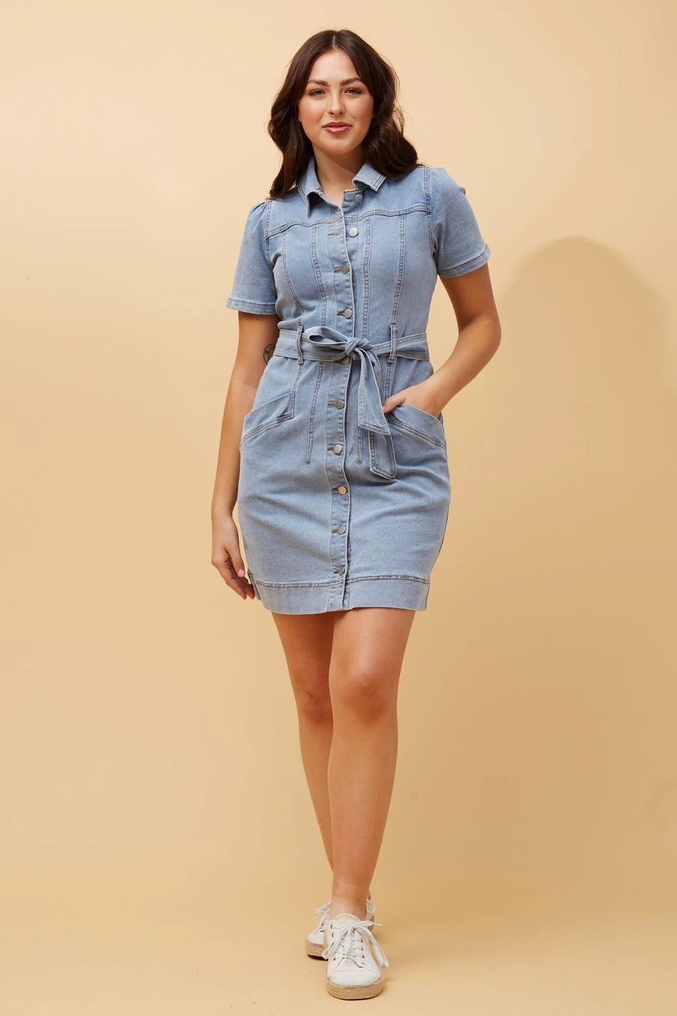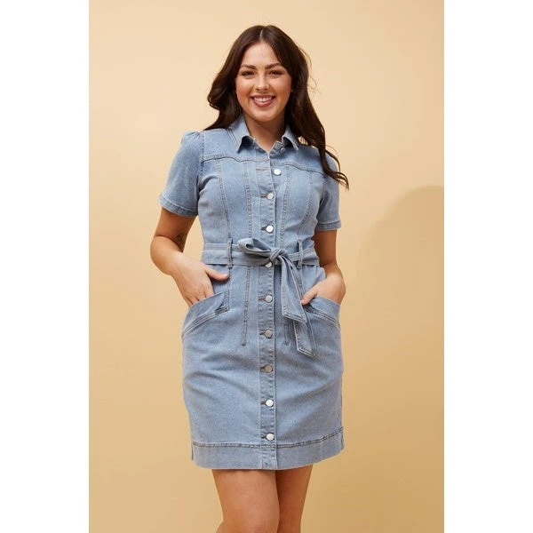 Step out in your new favourite dress, our ! In a mini length, buttons down the front and a collar, add a trendy handbag and shoes to elevate your look.