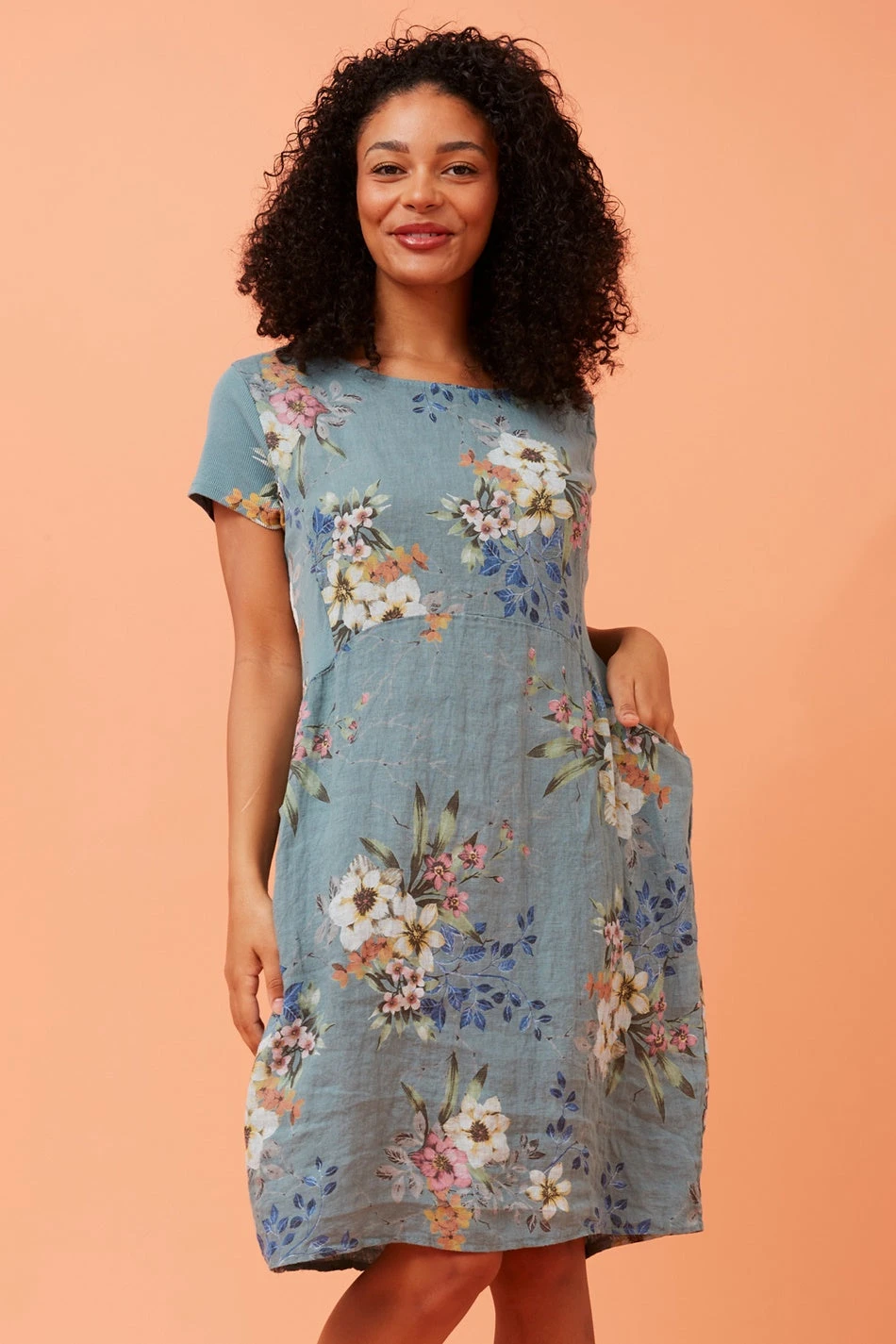 Look comfortable and romantic in our floral linen dress. Style with sandals or sneakers for an effortless summer everyday look!
