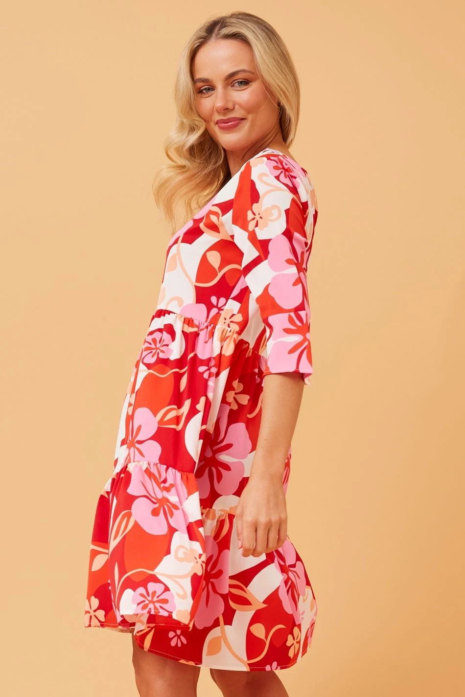 Add a pop of colour to your summer wardrobe with our colourful floral print baby doll dress. Style it with heels or kicks for a relaxed and elegant look!
