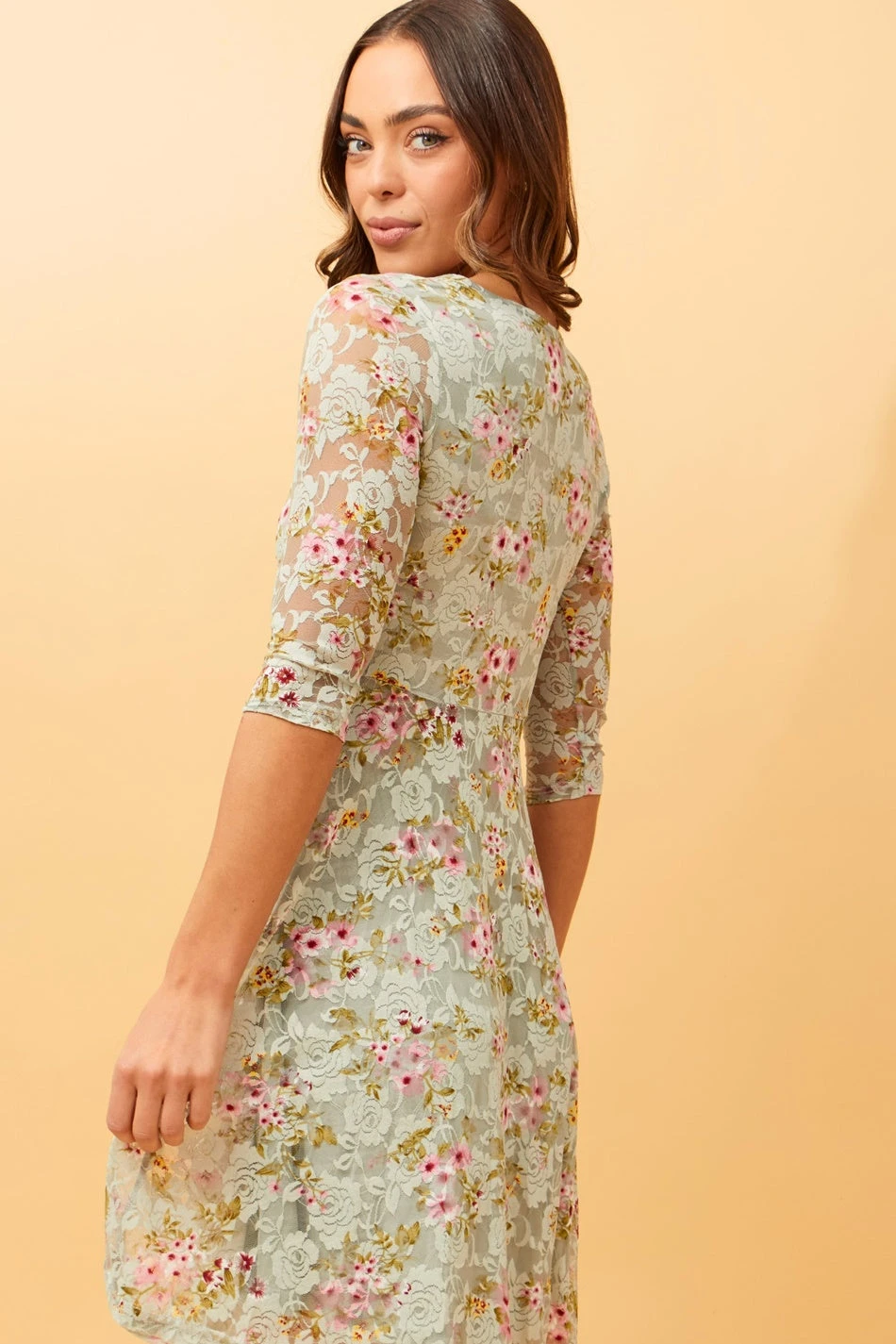 OLIVIA ZIP FRONT FLORAL LACE DRESS - Image 8