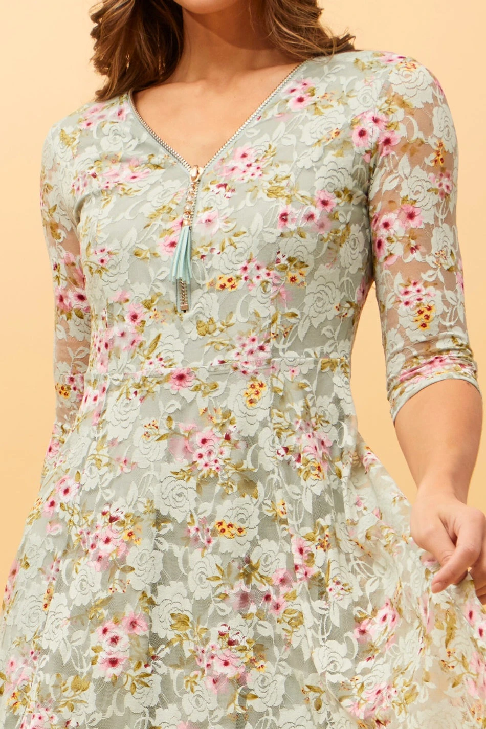 OLIVIA ZIP FRONT FLORAL LACE DRESS -Femme Connection Sales b98fcc7e95e178834a5eb4ac4d27e37f