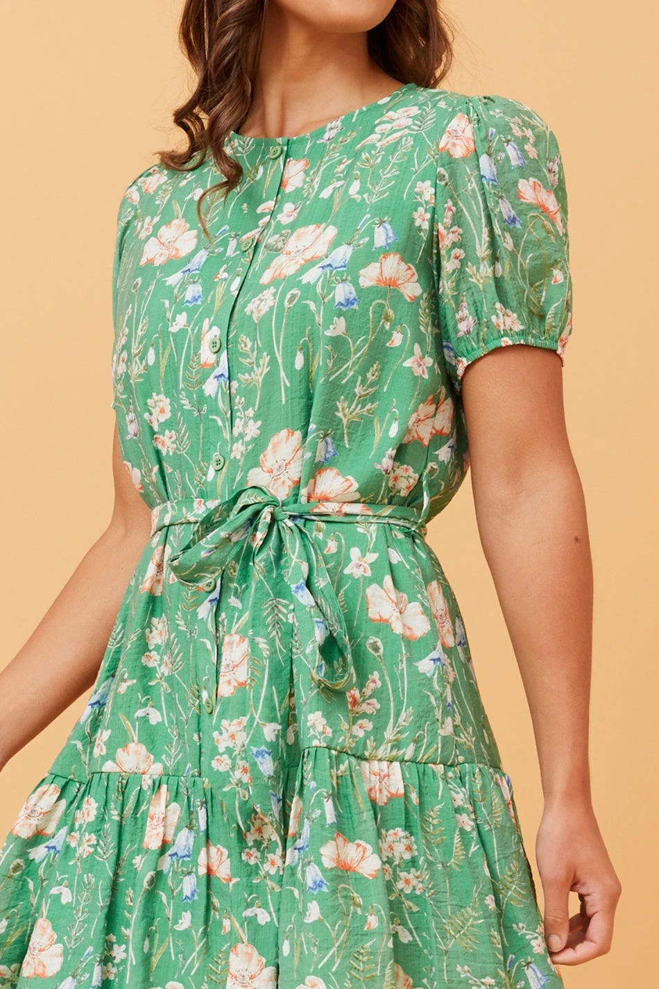 Sophisticated and chic, this floral short dress is ready for your next event. With button detail, tiered skirt and bold floral print, ace this look with your favourite heels for a glamorous finish.