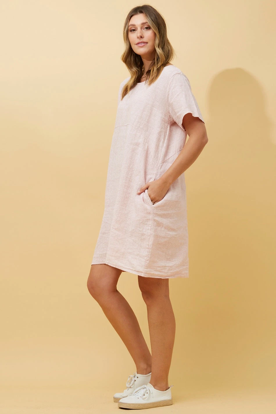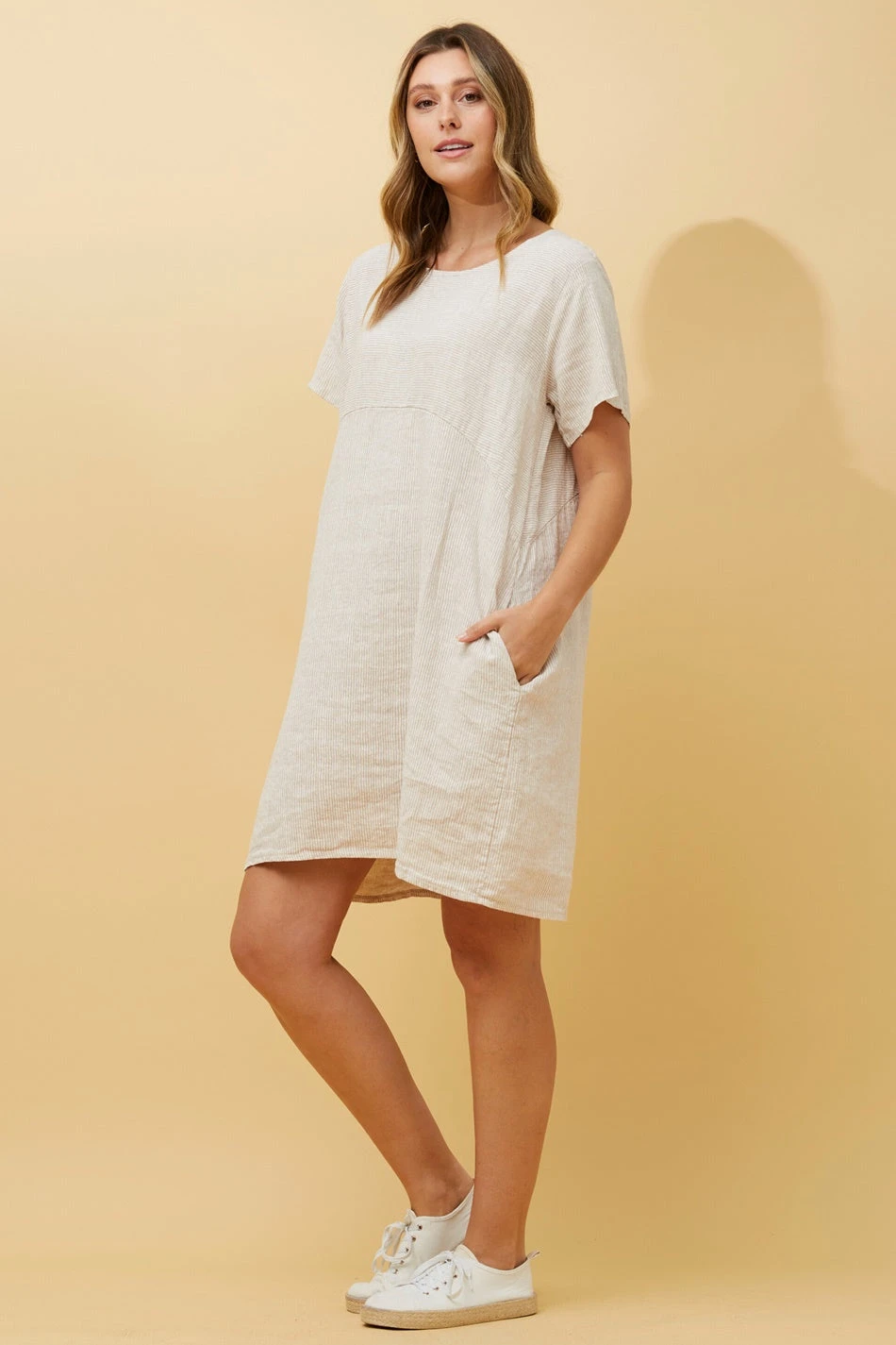 Relaxed and feminine, this stripe linen short dress is a must have this season! Easy to style with heels, sandals or sneakers for effortless and versatile looks!