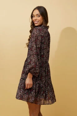 BLOOM FLORAL FRILL SLEEVE SHORT DRESS
