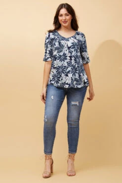 FRILA ABSTRACT PRINT FRILL DETAIL TOP