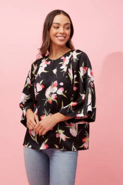 MALLORY FLORAL FLUTE SLEEVE BLOUSE