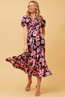 MARSHA FLORAL SHIRRED MIDI DRESS