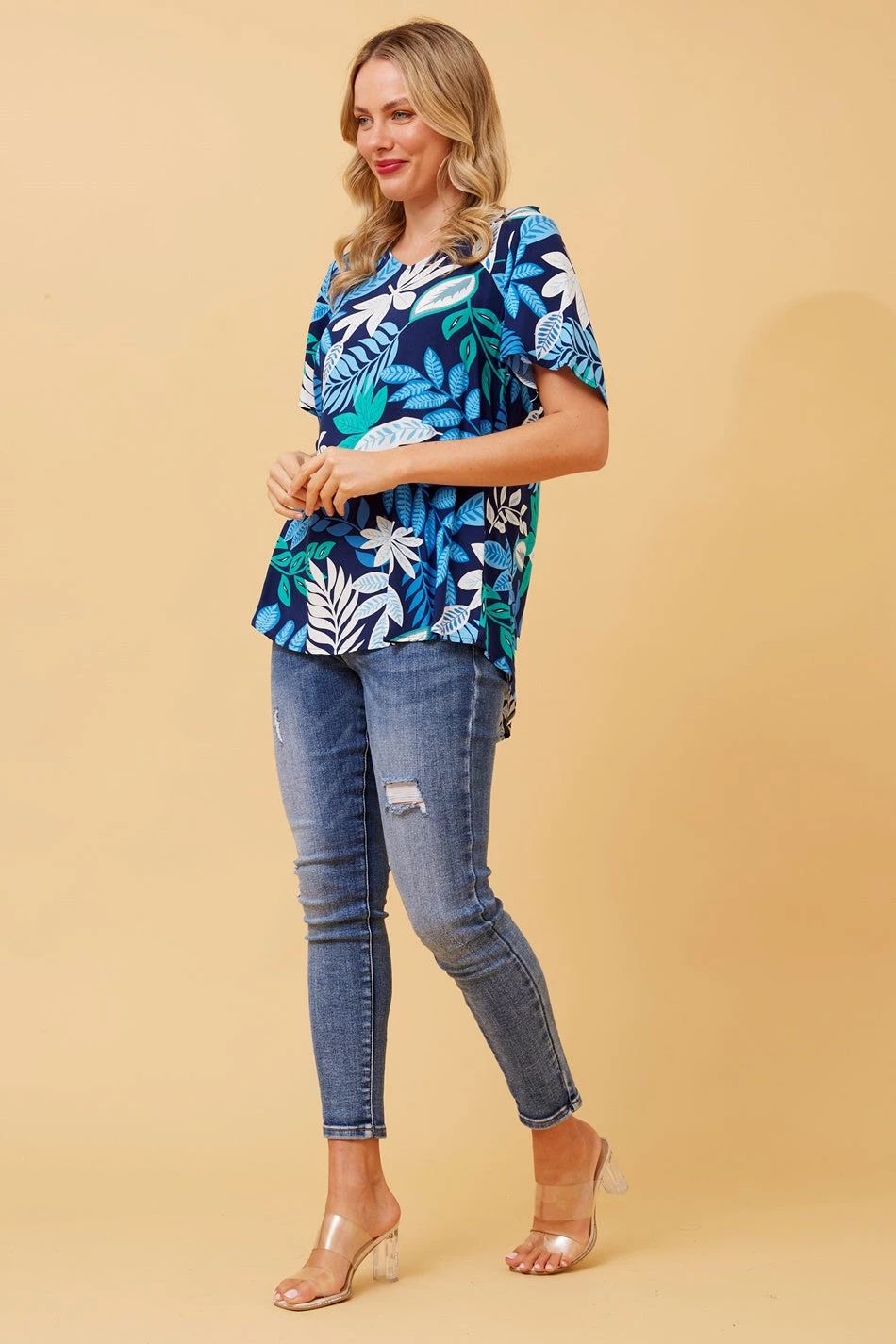 For a basic piece that has a little flair – our Sonia leaf print top will be a welcome addition to your wardrobe. Pair this top with trousers and heels for an elevated look or go casual with denim and runners.