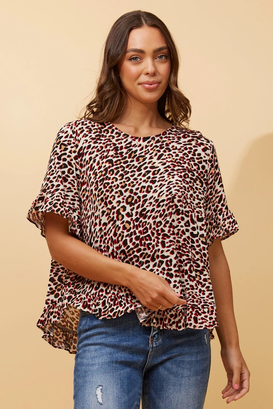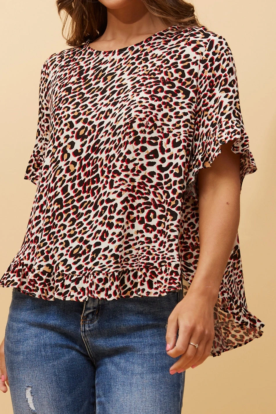 Add a stylish twist to your basic top with this frill detail top. Style with skinny jeans or shorts for a cook and effortless look!