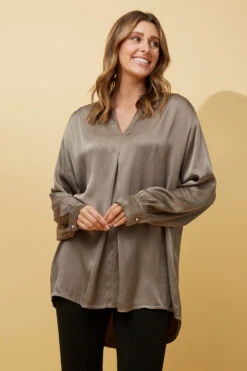 TERESINA LONG SLEEVE PLEAT DETAIL SATIN BLOUSE