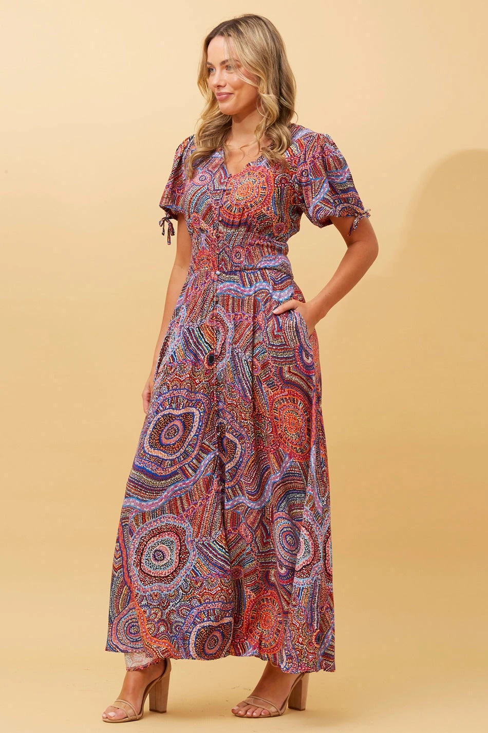 Channel effortless vibes with this gorgeous maxi dress made in colourful print. This maxi dress is relaxed in fit and can be worn with your favourite sandals for a casual daytime look.