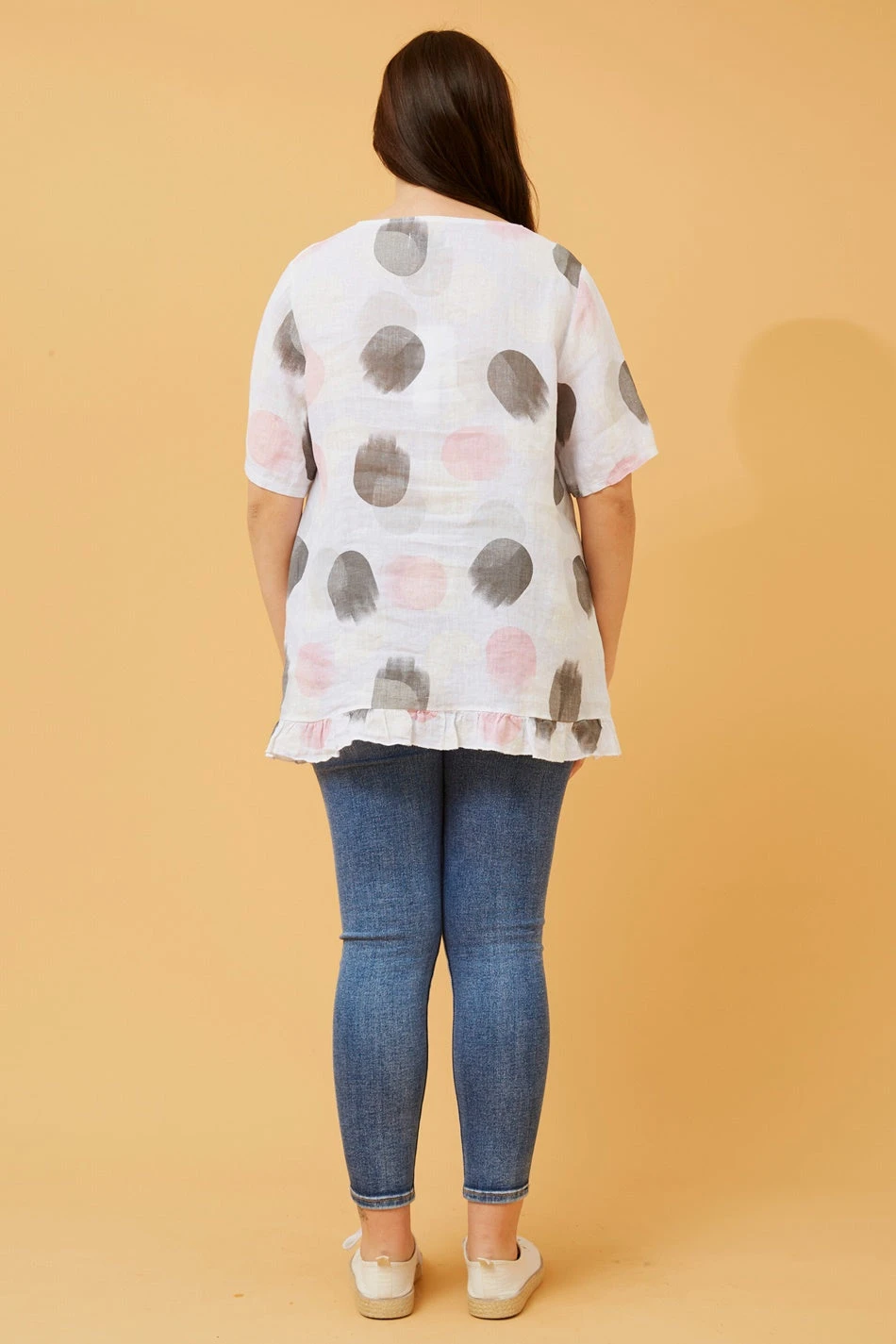 Feel absolutely beautiful in this polka dot print top this season! Style with everyday jeans or shorts for a stylish effortless look!
